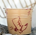Every pail is individually hand-crafted by us, Marni and Erica, on the farm in the good ole' USA. These are not manufactured, mass produced painted pails. We do our best to keep uniformity but since we personally paint and then free-style the designs, there will never be two exactly the same. We view this as a benefit. So if you are a lucky recipient of a pail with a "flaw" then...You are Welcome!